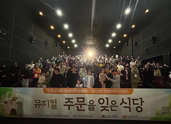 [무한뉴스=정충근 기자] 안성시치매안심센터는 지난 13일 안성 CGV에서 지역주민 200여 명이 참석한 가운데 치매인식개선을 위한 뮤지컬 ‘주문을 잊은 식당’ 공연을 시민들의 큰 공감과 호응 속에 성황리에 마쳤다고 밝혔다.