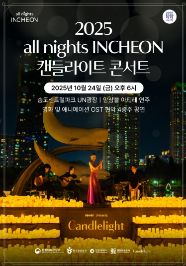 [무한뉴스=정승훈 기자] 인천광역시와 인천관광공사는 문화체육관광부 국비 공모사업인‘야간관광 특화도시 조성사업’의 일환으로‘2025 all nights INCHEON 캔들라이트 콘서트’를 24일 오후 6시, 송도센트럴파크 UN 광장에서 개최한다고 밝혔다.