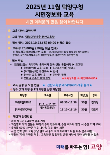 | ▲ 고양시 덕양구, 9차 시민정보화교육 수강생 모집 |