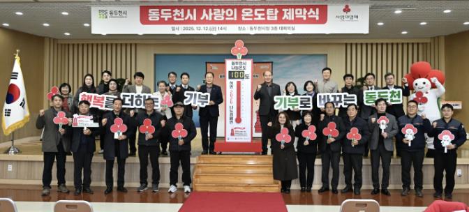 [무한뉴스=정승훈 기자] 동두천시는 지난 12월 12일 동두천시청 대회의실에서 동두천시장을 비롯해 동두천시의회 의장 및 의원, 경기북부 사회복지공동모금회 관계자, 기업·단체·시민 등 40여 명이 참석한 가운데 ‘사랑의 온도탑’ 제막식을 개최했다.