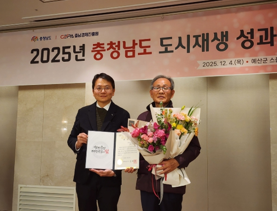 [무한뉴스=정민정 기자] 홍성군은 지난 4일 열린 ‘2025년 충남 도시재생 성과공유회’에서 광천읍 원촌마을 이두영 이장이 도시재생 업무 추진 유공으로 충청남도지사 표창을 수상했다고 밝혔다.
