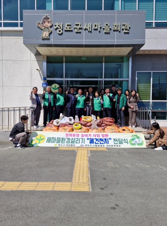 [무한뉴스=최진수 기자] 청도군은 4월 11일 금요일 청도군 새마을회관에서 2025 새마을환경살리기 행사에서 수거된 폐건전지 전달식을 가졌다. 새마을 지회에서 전달된 폐건전지는 약 737kg이다.