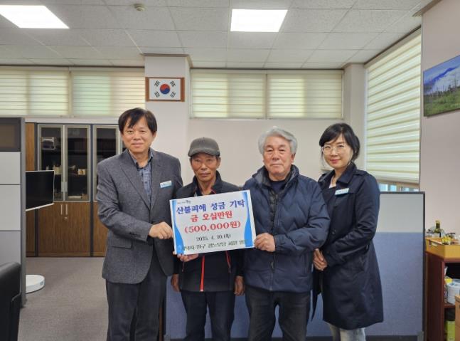 이번 성금은 산청군을 포함한 영남 지역에서 발생한 대형 산불로 삶의 터전을 잃은 주민들을 돕고자, 마을 어르신들이 십시일반 마음을 모아 마련한 것이다.