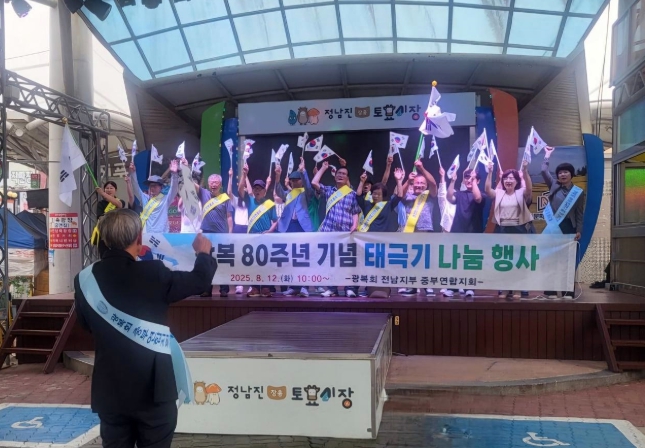 [무한뉴스=정민정 기자] 광복회 전라남도지부 중부연합지회(회장 양동철)는 광복 80주년을 맞아 장흥 장날인 12일 장흥 토요시장 일원에서 태극기 나눔 행사를 개최했다.