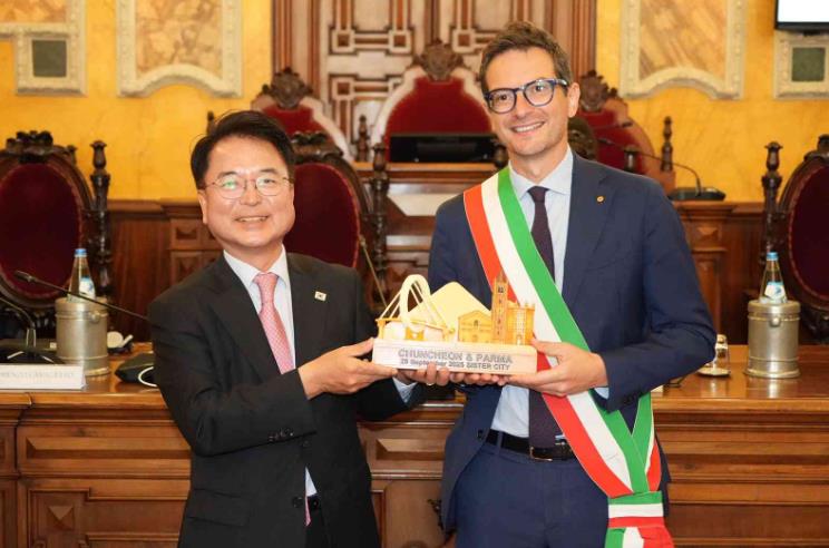 25일에는 이탈리아 파르마 시청에서 미켈레 구에라 파르마시장과 양 시간 자매결연 협약을 체결했다.