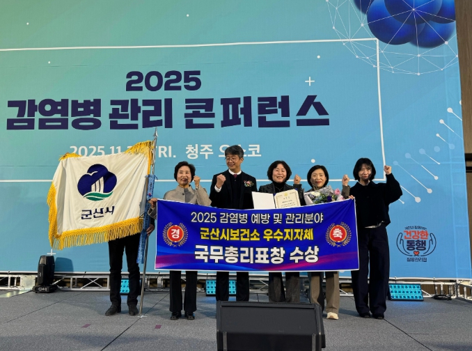 [무한뉴스=정민정 기자] 군산시가 질병관리청이 주최한 ‘2025년 감염병관리 콘퍼런스’ 에서 '2025년 지자체 감염병 예방·관리 업무 평가' 우수지자체로 선정되어 국무총리표창을 수상했다.