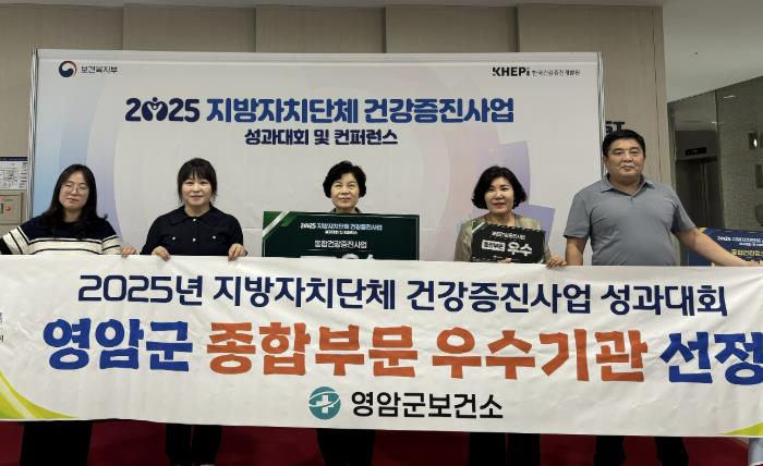 이번 표창은 전국 지자체의 주민 건강 증진 정책 추진 성과를 종합 평가해 수여되는 것으로, 영암군은 지역 밀착형 건강서비스, 통합건강관리 모델로 우수한 평가를 받았다.