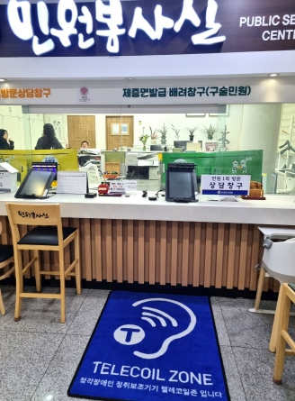 ‘텔레코일존’은 인공와우나 보청기에 탑재된 텔레코일(Telecoil) 기능을 활용해, 소음을 최소화하고 담당자의 음성을 명확하게 전달하는 보조 청취 시스템이다. 민원인이 텔레코일존에 들어서면 해당 보조장치를 통해 교신 음성을 선명하게 들을 수 있어, 정확한 민원 안내가 가능해진다.