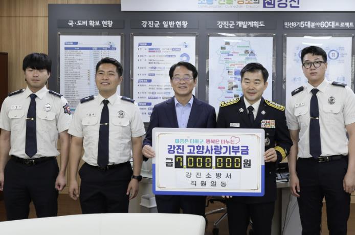 [무한뉴스=정민정 기자] 강진소방서 직원들이 지역 발전과 상생을 위한 뜻을 모아 700만원의 고향사랑기부금을 강진군에 기탁했다.
