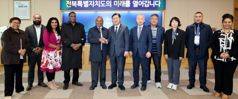 [무한뉴스=정민정 기자] 전북특별자치도는 10월 27일 파푸아뉴기니 국제무역·투자부 리차드 마루(Richard Maru) 장관을 단장으로 한 대표단이 전북도를 공식 방문해, 김관영 도지사와 면담을 갖고 농업, 교육, 국제개발협력 등 다양한 분야의 협력 확대 방안을 논의했다고 밝혔다.