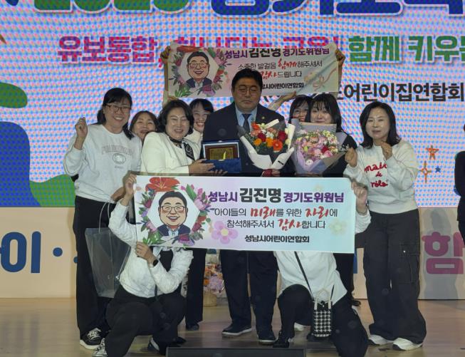 [무한뉴스=양현명 기자] 경기도의회 여성가족평생교육위원회 김진명 의원(더불어민주당, 성남6)은 10월 30일 용인 실내체육관에서 (사)경기도어린이집연합회 주최·주관으로 열린 '2025년 경기보육인대회'에서 경기도 보육 환경 개선에 기여한 공로를 인정받아 공로패를 수상했다.
