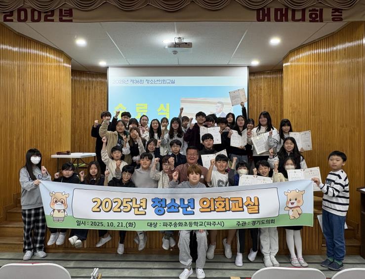 [무한뉴스=양현명 기자] 경기도의회 건설교통위원회 안명규 의원(국민의힘, 파주5)은 10월 21일 파주송화초등학교 시청각실에서 열린 ‘제36회 청소년의회교실’에 참석해 파주 송화초등학교 학생들과 함께 모의의회를 체험하며 민주주의의 가치와 의회의 역할을 함께 나누는 뜻깊은 시간을 가졌다.