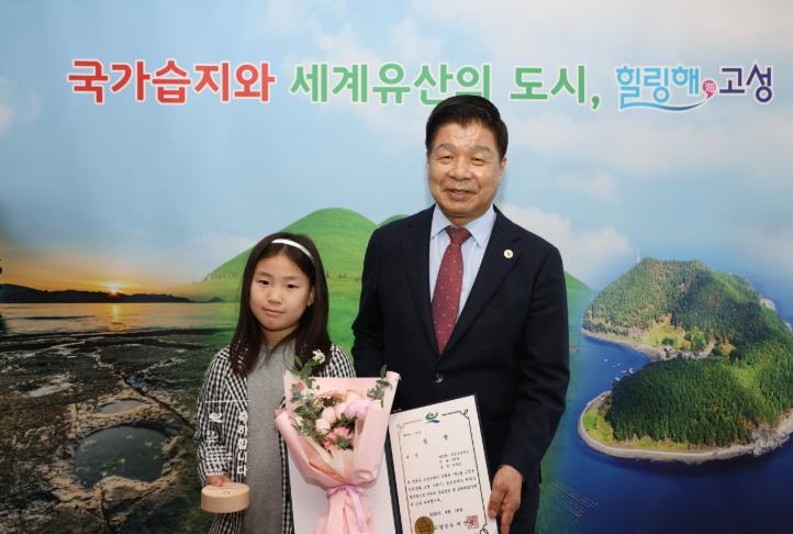 이날 상장 수여식에서는 대성초등학교 2학년 이로은 학생(저학년)과 철성초등학교 6학년 박재희 학생(고학년)이 군수로부터 직접 상장을 전달받았다.