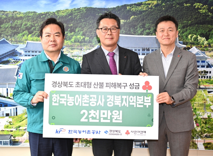 김학홍 행정부지사는“한국농어촌공사 경북지역본부의 따뜻한 나눔에 깊이 감사드린다. 기부해주신 성금은 이재민을 위한 실질적인 지원에 소중히 사용하겠다”고 밝혔다.