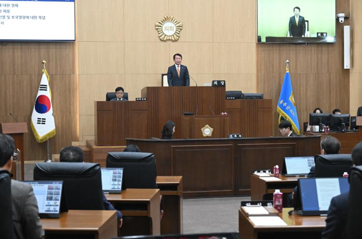 최길영 의장은 개회사에서 “산불로 피해를 입으신 분들께 깊은 애도와 위로의 뜻을 전하며, 진화와 피해 복구를 위해 도움을 주신 모든 분들께 감사드린다”며 “피해 복구, 일상 회복, 그리고 예방을 위한 대책 마련에 의회도 함께하겠다”고 밝혔다.