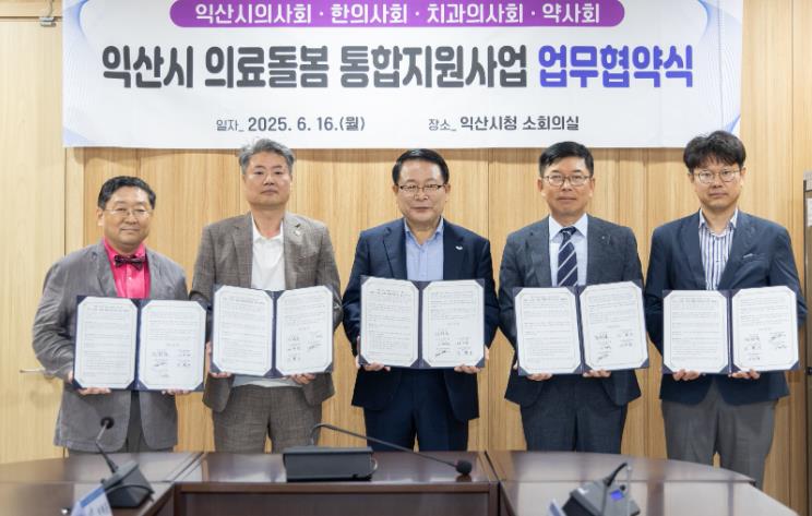 익산시는 16일 시청 소회의실에서 '의료‧요양‧돌봄 통합지원 시범사업'의 원활한 추진을 위해 지역 의약 관련 4개 단체와 업무협약을 체결했다.