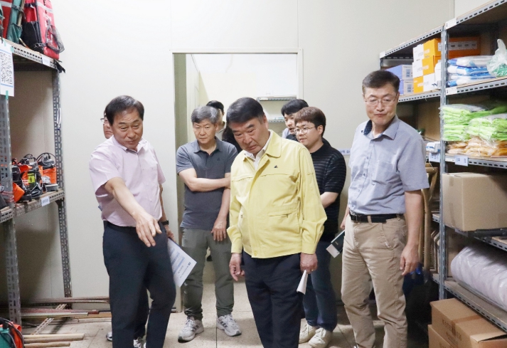 첫 일정으로 황 구청장은 수해 피해에 다소 취약한 인덕원동, 관양동, 비산2동 행정복지센터에 직접 방문했다. 관계 부서와 함께 수방자재 보관상태, 양수기와 엔진펌프 등 기기 정상 작동 여부, 창고 정리상태 등을 점검하고 풍수해 재난은 신속한 대응이 중요함을 강조하면서 대응체계 점검을 지시했다.