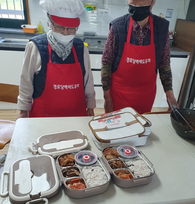 ‘이웃사촌 희망 한 끼’ 지원사업은 마을별로 취약계층 등 대상자를 선정하여 경로당에서 마련한 도시락을 경로당 회원 및 마을 주민들이 직접 주 1회 이상 방문전달하며 안부를 살피는 사업이다.