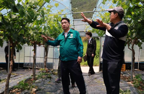 | ▲ 정영철 영동군수, 우박 피해 현장 방문 “피해 농가 회복에 군 역량 총동원” |
