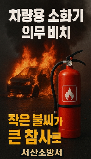 최장일 서산소방서장은 “차량 화재는 누구에게나 일어날 수 있는 사고이지만, 초기 대응만으로 피해 규모를 크게 줄일 수 있다”며 “차량용 소화기 비치는 단순한 법적 의무를 넘어 스스로와 가족의 안전을 지키는 최선의 방법”이라고 강조했다.