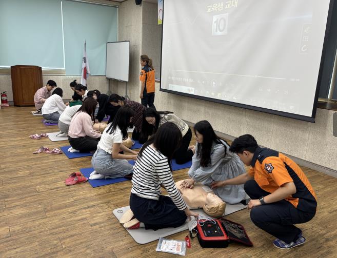 교육은 △응급처치 이론 △생애주기별 기도폐쇄 처치법 △가정 및 직장에서 발생 가능한 응급환자 사례별 대처법 △심폐소생술 및 자동심장충격기(AED) 사용 방법 등 다양한 상황에 대한 응급처치법을 중심으로 이론과 실습을 병행하여 진행됐다.