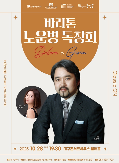 [무한뉴스=최진수 기자] 지역예술인과 함께하는 공연인 대구콘서트하우스 클래식 ON 공연이 ‘바리톤 노운병 독창회’로 무대에 올려진다.