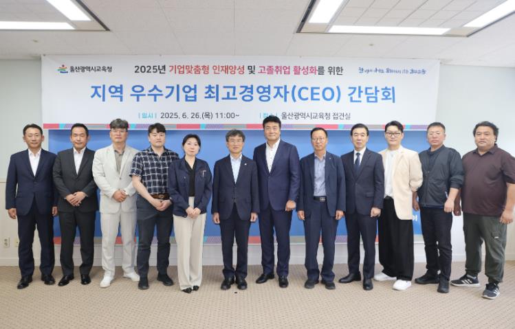 [무한뉴스=최진수 기자] 울산광역시교육청은 26일 접견실에서 지역 우수기업 최고경영자(CEO) 10명을 초청해 ‘2025년 상반기 지역기업 간담회’를 열었다.