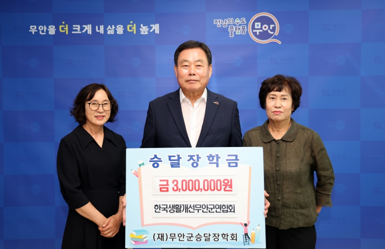김산 군수는 “무안군 인재 육성을 위해 흔쾌히 장학금을 기탁 해주셔서 감사드린다”며, “기탁 해주신 장학금은 앞으로 무안군을 이끌 지역인재 양성을 위해 소중히 사용하겠다”고 전했다.