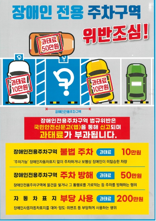 | ▲ 장애인전용주차구역, 우리 함께 지켜요! |