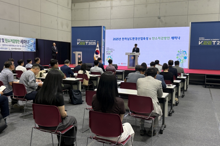 [무한뉴스=정민정 기자] 전남녹색환경지원센터(센터장 김은식, 전남대 환경시스템공학과 교수)는 지난 9일 김대중컨벤션센터 1층 세미나룸에서 중소기업 및 공공기관 관계자를 대상으로 ‘전라남도 환경산업육성과 탄소저감 방안 세미나’를 개최했다.