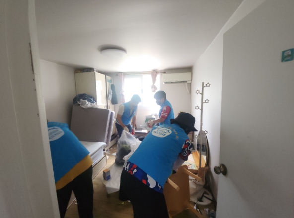 복지기동대 대원들은 구슬땀을 흘리며 주거공간을 정리하고 소독을 병행해, 초등학생 자녀가 더욱 쾌적하고 안전한 환경에서 지낼 수 있도록 힘썼다.