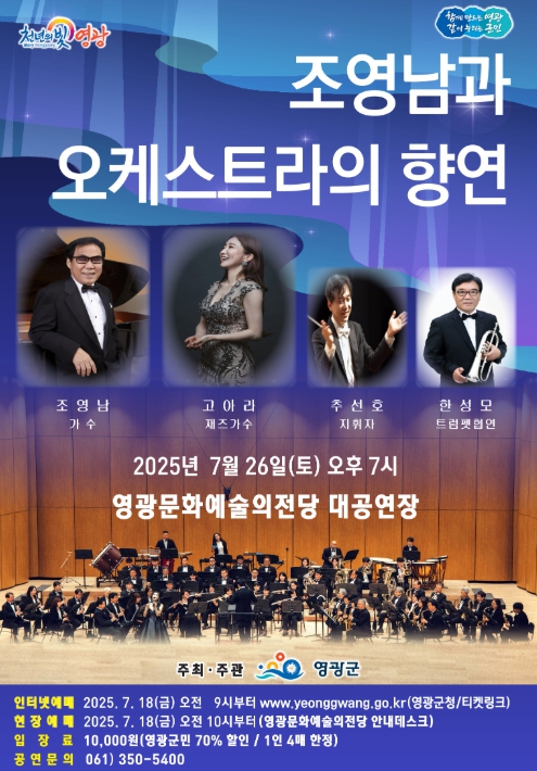 무더운 여름밤, 깊은 감성과 유쾌한 에너지가 어우러지는 이번 공연은 대중음악과 오케스트라의 협연으로 영광군민에게 특별한 시원함을 선사할 예정이다.
