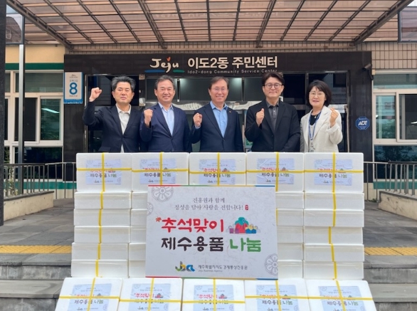 이번에 전달한 제수용품은 진흥원이 직접 운영하는 제주특산품전시판매장(이제주숍)에서 구매한 수산물과 축산물 등으로 구성했으며, 최근 지역 소비 위축으로 어려움을 겪는 제주상품 판매 촉진에도 기여했다.