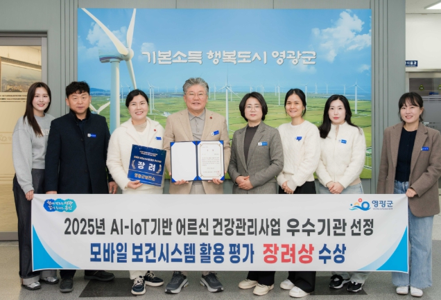 [무한뉴스=정민정 기자] 영광군은 12월 18일 한국사회보장정보원 주관으로 서울PJ호텔에서 열린 2025년 AI-IoT기반 어르신 건강관리사업 모바일 보건소 시스템 활용 평가 성과대회에서 장려상을 수상하며 2년 연속 우수기관으로 선정됐다.