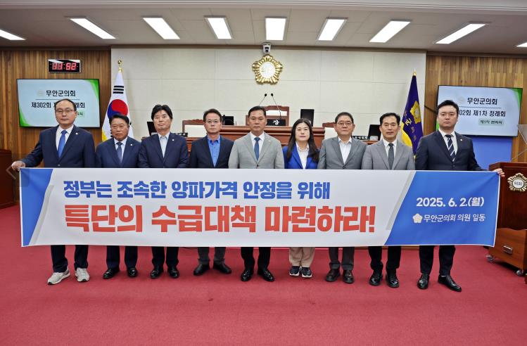 [무한뉴스=정민정 기자] 무안군의회가 최근 하락세를 거듭하고 있는 양파 가격 안정화를 위해 정부에서 특단의 대책을 마련해 줄 것을 촉구하고 나섰다.