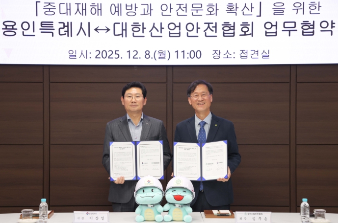 [무한뉴스=정윤식 기자] 용인특례시는 8일 시청 4층 접견실에서 대한산업안전협회와 ‘중대재해 예방과 안전문화 확산을 위한 업무협약’을 맺었다.
