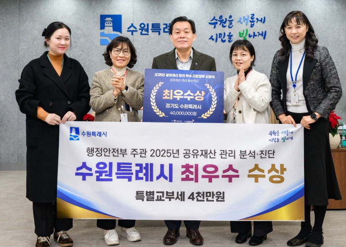 [무한뉴스=양현명 기자] 수원특례시가 행정안전부 주관 ‘2025년 공유재산 관리 분석·진단 평가’에서 최우수 지자체로 선정돼 특별교부세 4000만 원을 확보했다. 시상식은 22일 정부서울청사에서 열렸다.