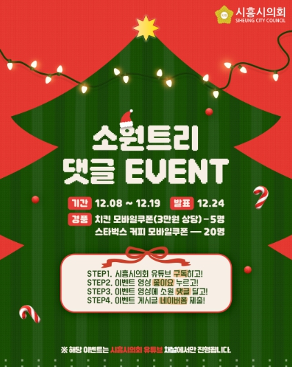 | ▲ 시흥시의회, 시민과 함께 만드는 ‘크리스마스 소원트리’… 유튜브 댓글 이벤트 개최 |