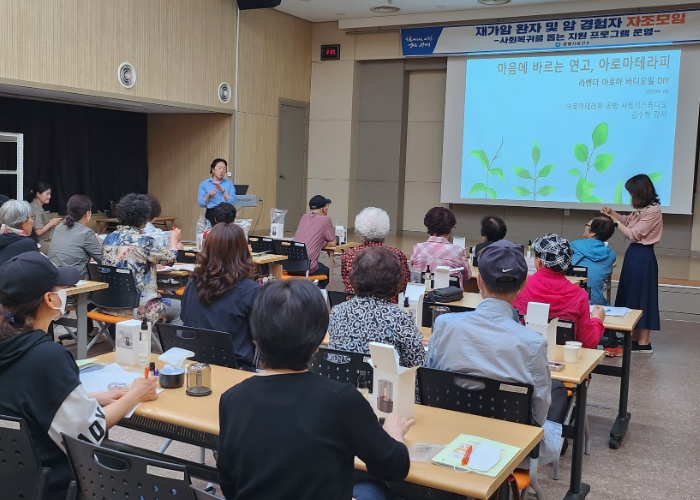 참여자들은 일상 회복력을 높이는 건강 관리법과 치료 과정에서 겪는 스트레스를 해소할 수 있는 아로마테라피 교육을 받았고, 취·창업을 원하는 참여자는 일자리 상담이 가능한 관내 기관 정보도 제공받았다.