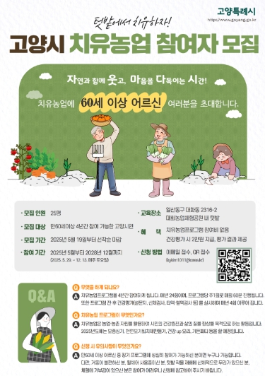 접수는 이메일과 큐알(QR) 코드 방식으로 가능하며, 고양시청과 농업기술센터 누리집(홈페이지)을 통해 참여자 모집 안내가 이뤄진다.