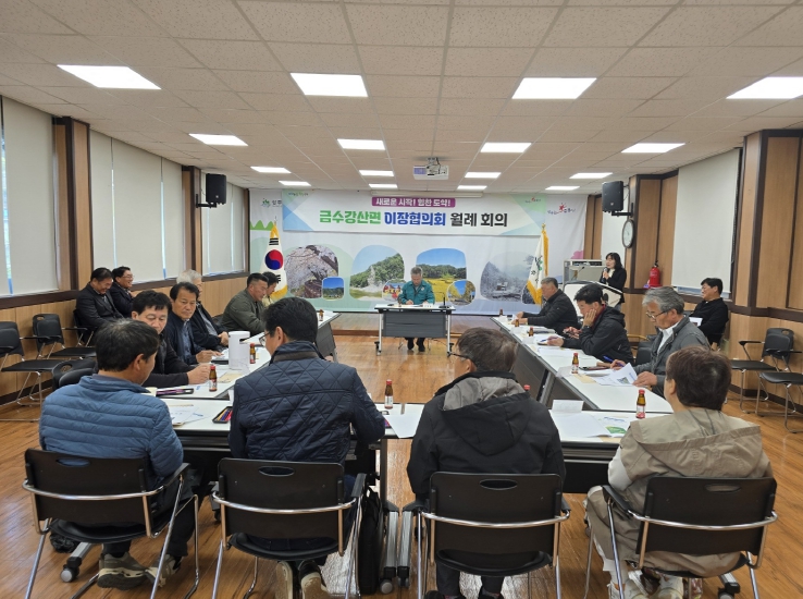 조형철 금수강산면장은 “늘 면 행정에 적극 협조해주시는 이장님들에게 감사인사를 전하며, 본격적인 영농철로 올 한해 무탈하게 풍년 농사짓기를 바라며 건조한 날씨에 이장님들도 산불감시원이 되어 산불예방 활동을 부탁드린다.”고 당부했다.