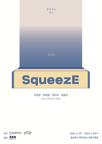 이번 SqeezE 전시는 빛을 이용해 판을 만드는 실크스크린 판화기법에서 착안하여 감광된 스크린에 구멍을 만든 뒤 그 사이로 잉크를 밀어 넣어 이미지를 인쇄하는 실크스크린 동작에서 따온 제목으로 ‘눌러내고, 찍고, 남긴다’는 부제를 가지고 있다.