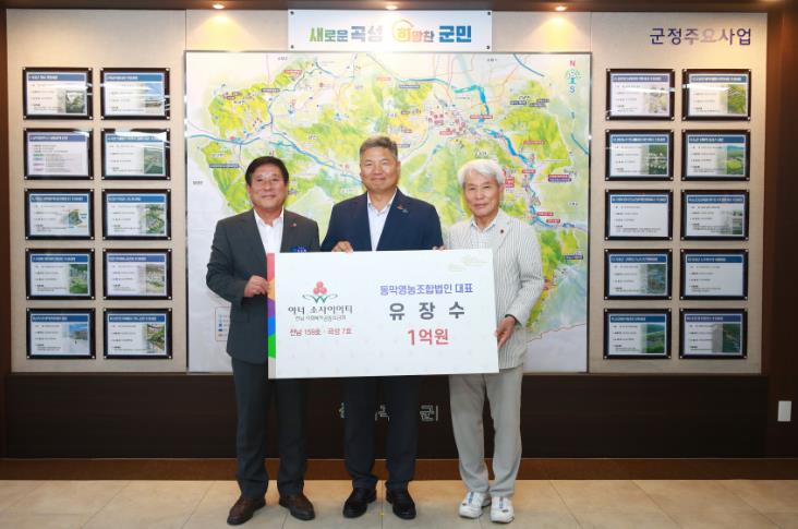 조상래 곡성군수는 “지역사회 나눔문화 확산을 위해 실천해 준 유장수 회원에게 감사 인사드리며 전달된 성금은 관내 어려운 이웃을 위해 소중히 쓰겠다”라고 밝혔다.