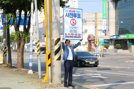 ▲ 윤병태 나주시장이 영산포 삼거리에서 1인 사전투표 독려 캠페인을 진행했다