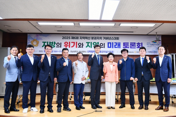 [무한뉴스=정민정 기자] 여수시의회는 여수시, ㈔거버넌스센터와 공동 주최로 지난 27일 전남대학교 여수캠퍼스에서 ‘지방의 위기와 지역의 미래’를 주제로 제6회 지역혁신·분권자치 거버넌스대회 토론회를 개최했다.