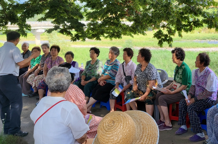 무주군농업기술센터에서는 폭염기 농업인 건강 보호를 위한 마을 단위 예방 교육을 진행 중이다.