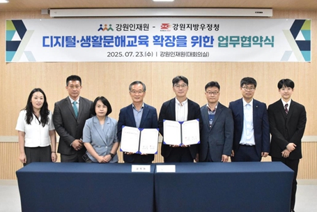 [무한뉴스=정민정 기자] 강원인재원과 강원지방우정청은7월 23일, 강원인재원 대회의실에서 디지털 및 생활문해교육의 지속적인 확장과 공동협력을 위한 업무협약을 체결한다.