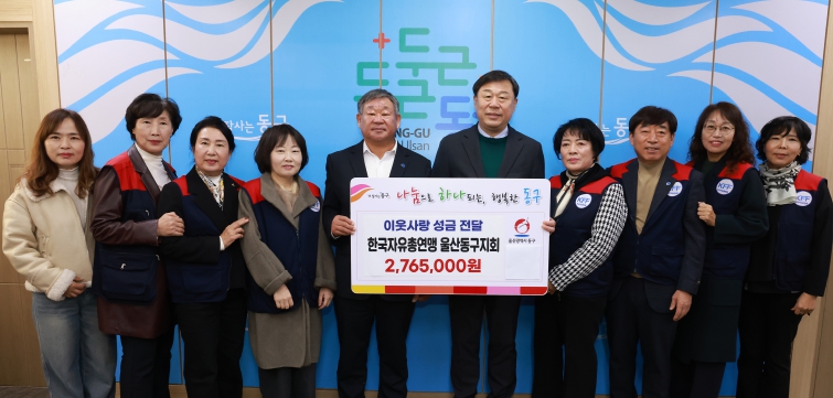 [무한뉴스=최진수 기자] 한국자유총연맹 울산동구지회(회장 이병태)는 11월 24일 오전 11시 울산 동구청을 방문해 이웃돕기 성금 276만 5천 원을 전달했다.