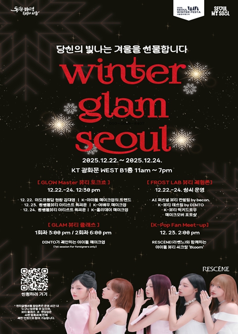 [무한뉴스=정승훈 기자] 서울시가 서울윈터페스타를 찾은 국내외 관광객에게 차별화된 한류 경험을 제공하기 위해 K-뷰티를 주제로 한 ‘윈터 글램 서울(Winter Glam Seoul)’ 팝업 행사를 12월 22일부터 24일까지 3일간 개최한다.