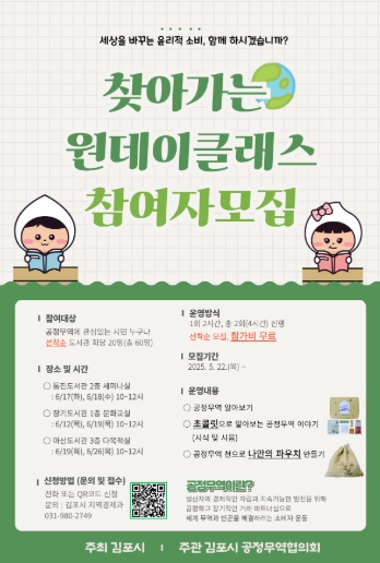 [무한뉴스=정승훈 기자] 김포시는 윤리적 소비 문화 확산을 위한 '2025년 공정무역 설명회'에 참여할 수강생을 오는 6월 18일까지 모집한다고 밝혔다.